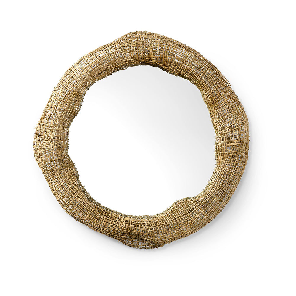 Mirror is framed in a hand-formed split rattan open weave in a natural finish hand-formed over a powder-coated metal frame. Mirror includes metal cleat for mounting. Coordinates with the Andorra collection.